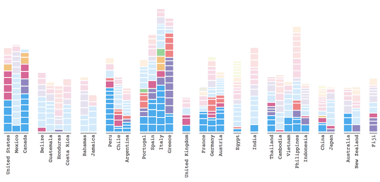 Explore Adventure analyzes where and when people in different countries search for locations in other countries.